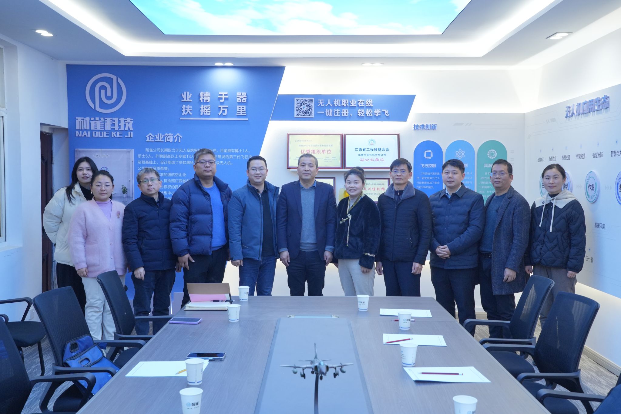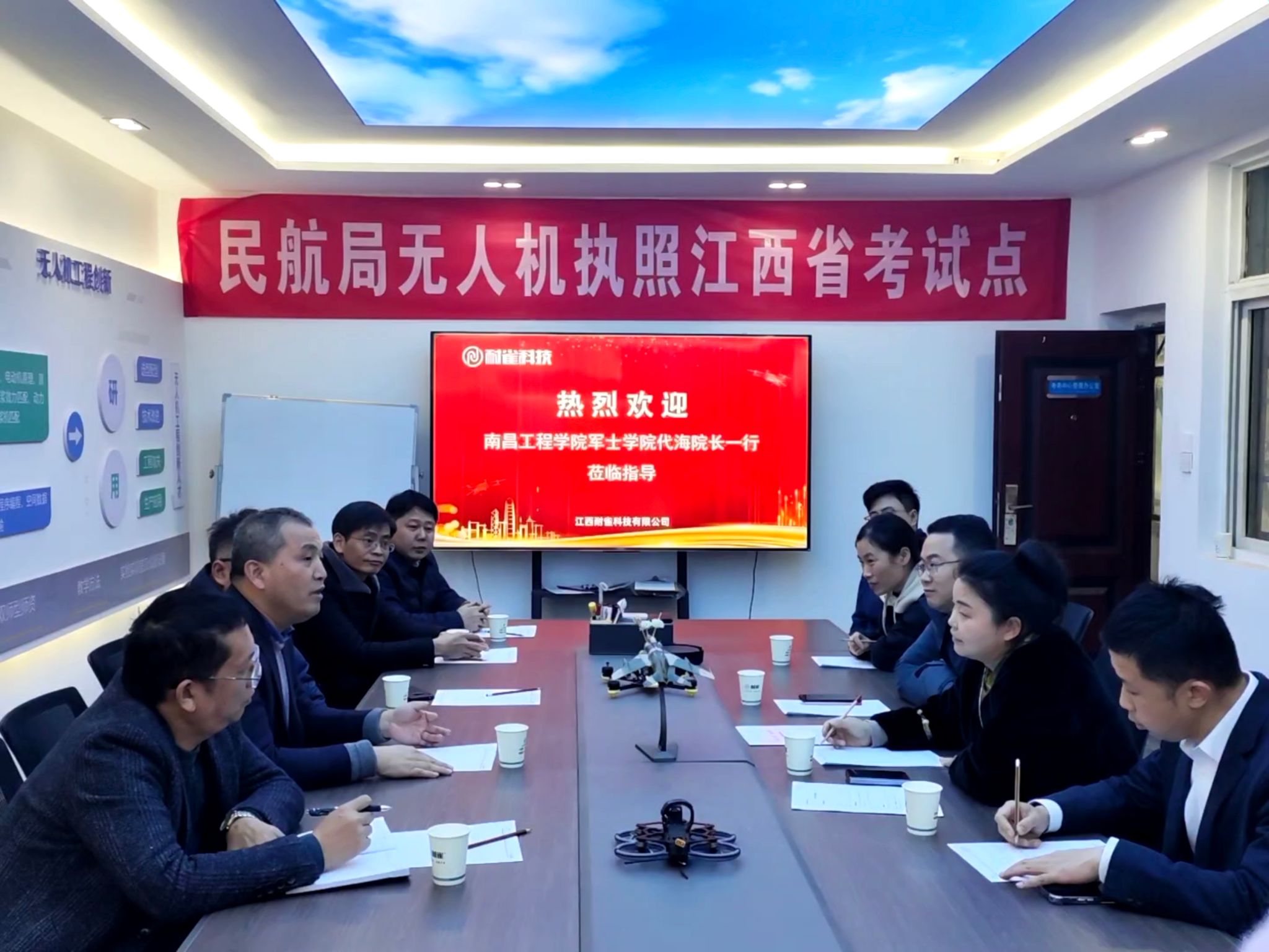 12月17日,军士学院院长代海一行赴江西耐雀科技有限公司开展调研,学院教学管理人员、专业负责人和任课教师参加。在耐雀科技有限公司负责人热情接待下,代海院长一行参观了公司的无人机设备展览区、研发生产中心、无人机执照理论考场、室内飞行区等场所。