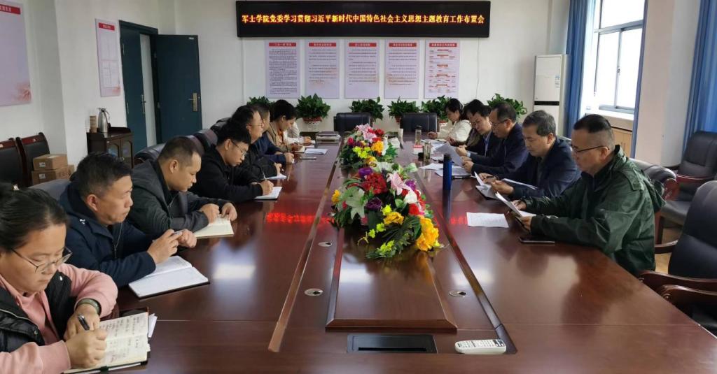4月25日,军士学院党委在彭桥校区管理委员会二楼会议室召开学习贯彻习近平新时代中国特色社会主义思想主题教育工作布置会,军士学院党委全体教师党员参加会议,党委书记章建明主持会议。