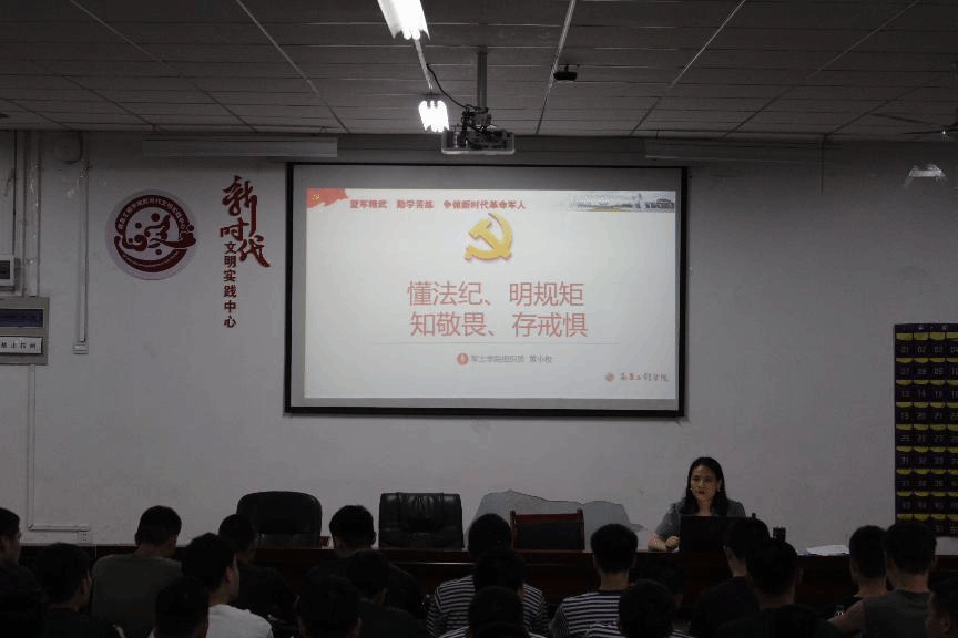 6月12日晚,军士学院第一学生党支部在军教楼314教室开展党纪学习教育专题党课,第一学生党支部书记黄小枚作题为“懂法纪、明规矩、知敬畏、存戒律”的党课,学生党员及入党积极分子共计100余人参加。