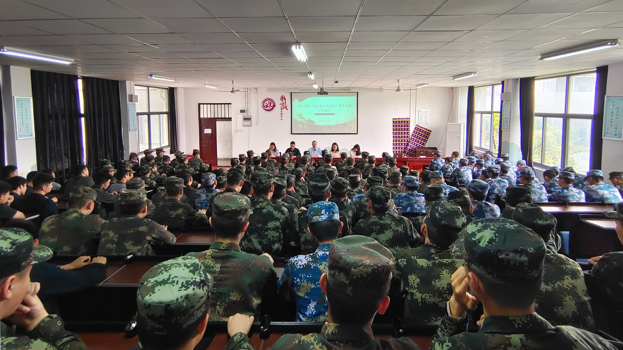 章建明强调,良好的学习生活习惯是每个军士生都应该具备的,同时也是取得更高更大成就的基础,学生干部要率先示范,以更加饱满的热情和更加扎实的作风,推动学院各项工作再上新台阶。辅导员就近期有关工作进行了布置传达,各部门学生代表就4月以来工作向大会作报告。