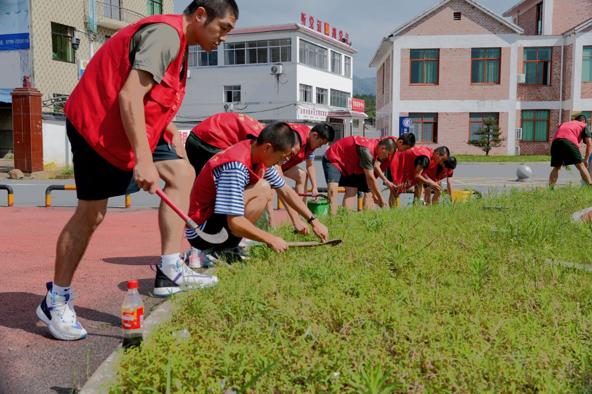 图为实践团成员开展除草志愿服务时的场景