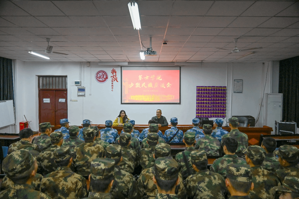 11月25日,军士学院在军教楼新时代文明实践中心组织开展少数民族学生座谈会。学院副院长、统战委员胡杰出席,全体少数民族学生参加。本次座谈会由辅导员敖诗意主持。