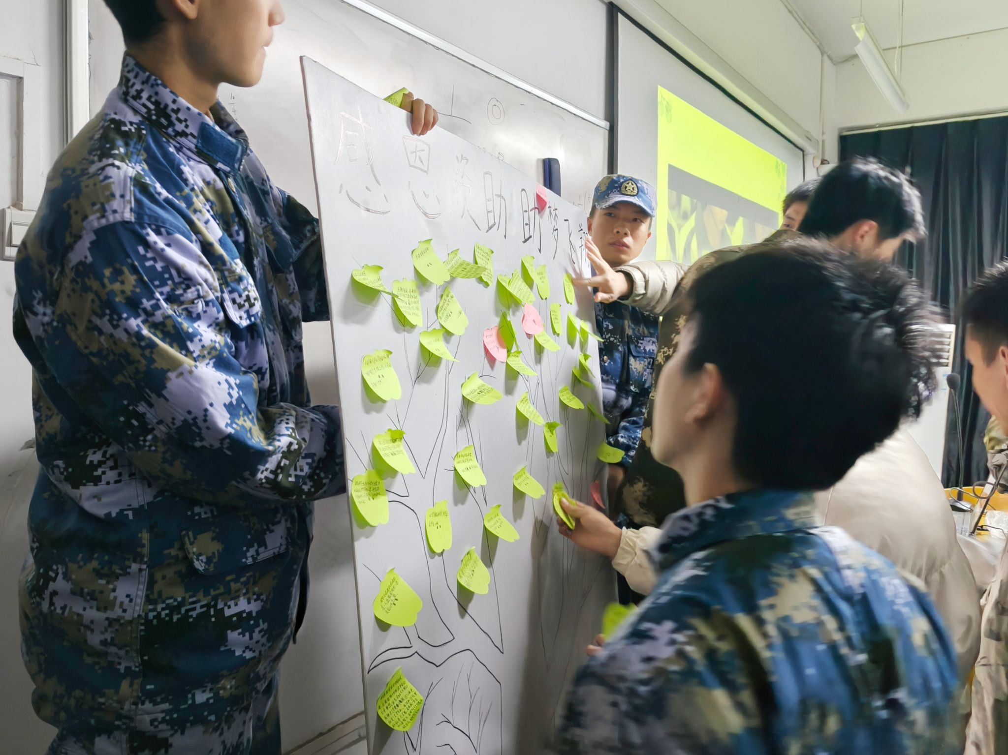 活动现场,军士生集中观看了全国学生资助管理中心推出的视频《资助之光·照亮学生成长之路》。通过观看视频,大家对学生资助事业为促进教育公平的重要意义有了更清晰的认识,并纷纷写下心中对国家资助政策、学校校友奖学金设立者的感谢与对未来的期盼。活动在共绘成长树中走向尾声。
