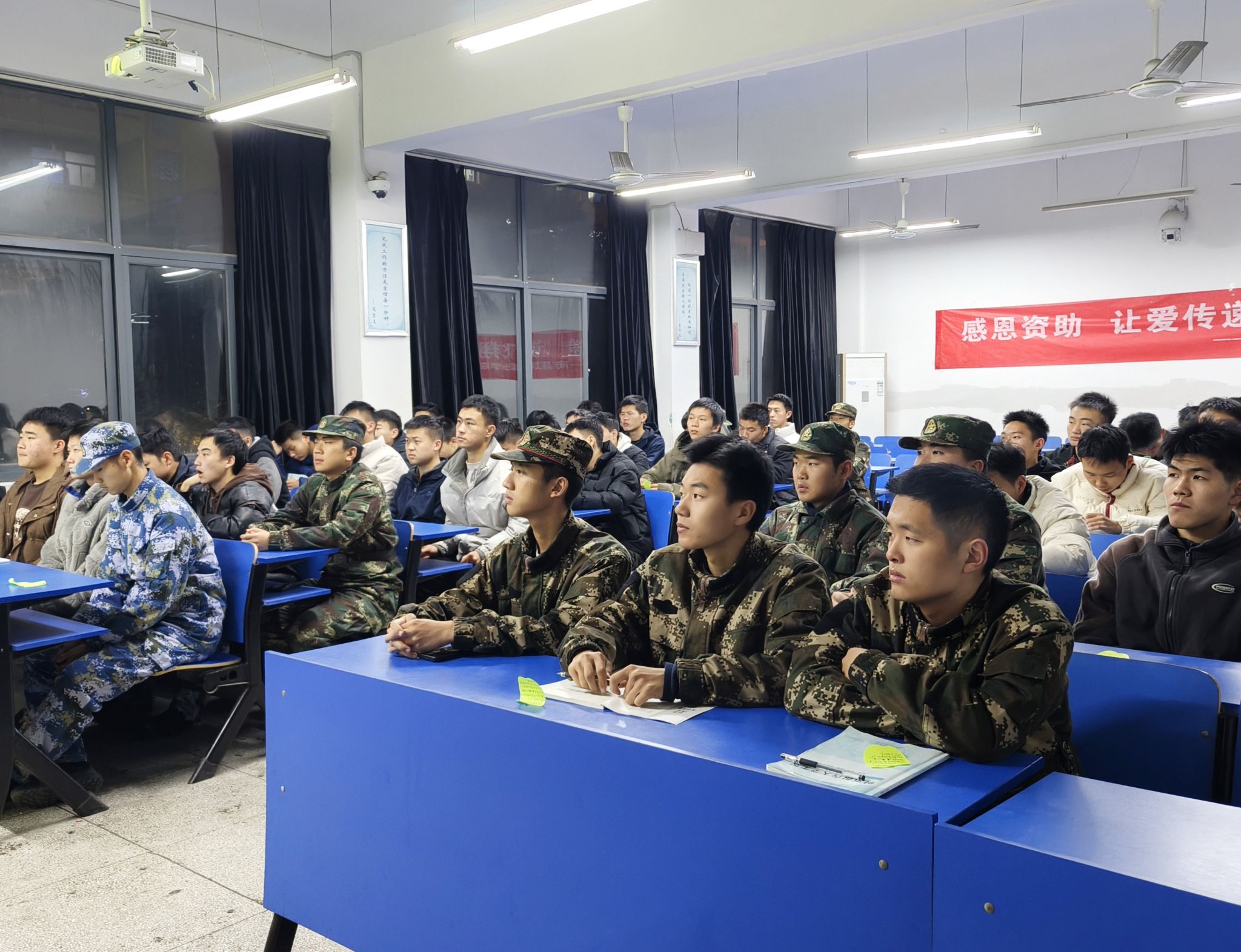 为加强受助军士生感恩教育与励志教育。12月27日晚,学院在军教楼208教室组织开展“感恩资助,助梦飞翔”主题教育活动,本次活动由团委学生会资助服务部举办,受助学生共计70余人参加。