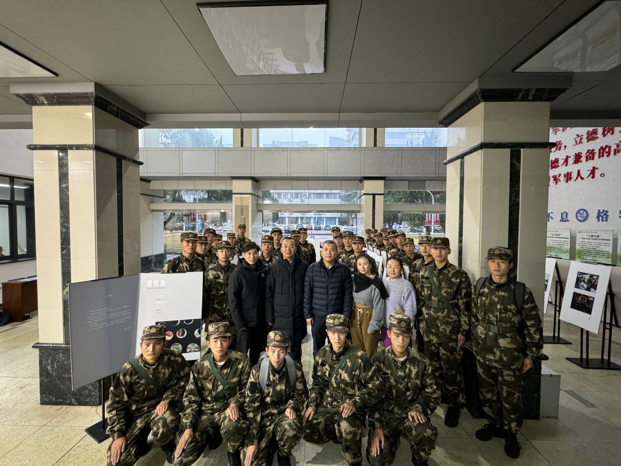 1月2日下午,为培养数字媒体技术专业审美素养,检验学习成果,军士学院在军教楼大厅举办2023级数字媒体技术专业《认知实习》与《摄影摄像技术》课程摄影作品展。学院院长代海、副院长胡杰及师生代表共计300余人先后参观了展览。