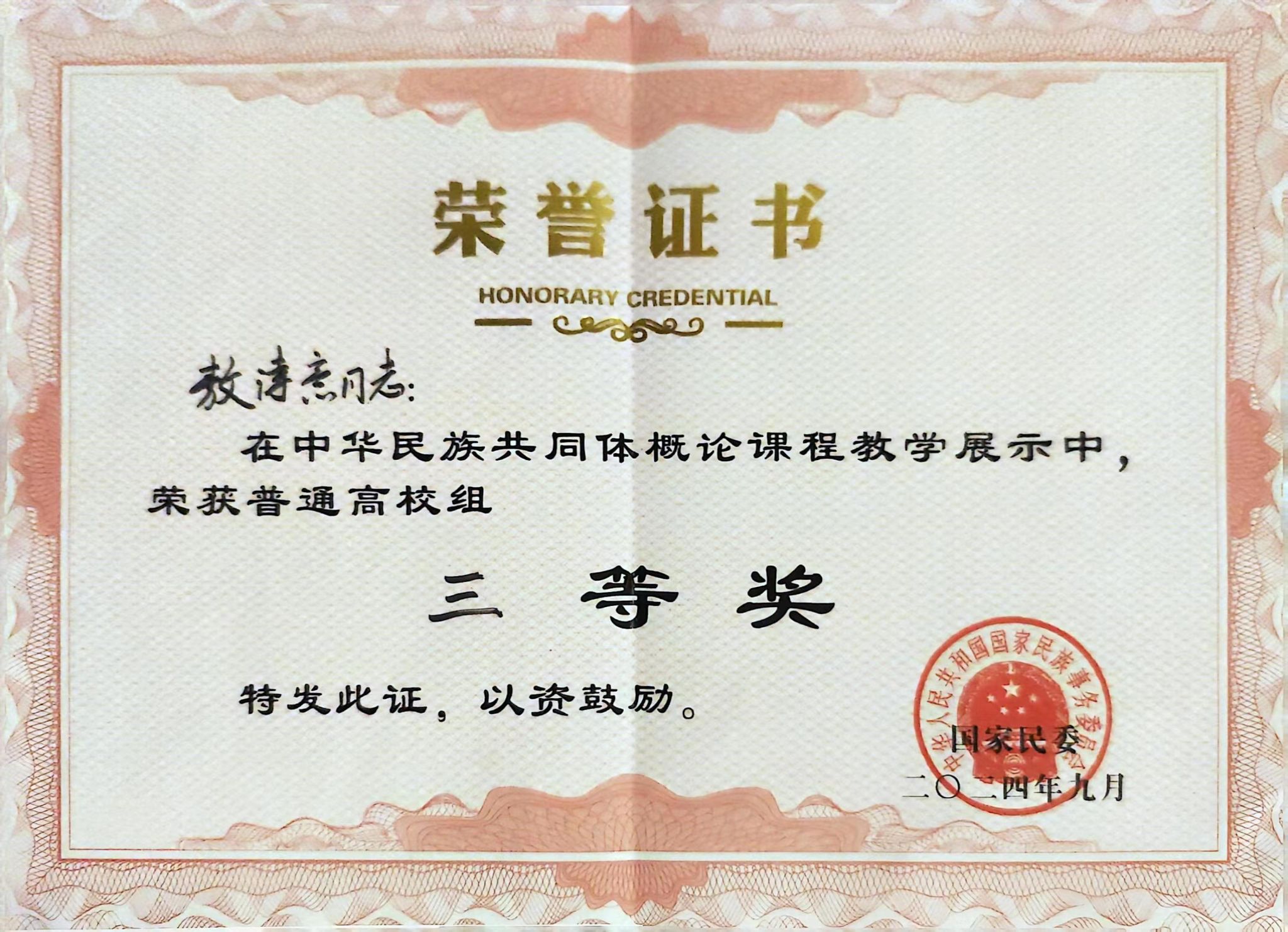 9月19日至20日,由国家民委主办的中华民族共同体概论课程教学展示活动在辽宁大连成功举办,活动旨在深入学习贯彻习近平总书记关于加强和改进民族工作的重要思想,深入贯彻落实党的二十届三中全会精神和全国教育大会精神,用好《中华民族共同体概论》教材,培养优秀师资,打造精品课程。我校军士学院教师敖诗意荣获三等奖。