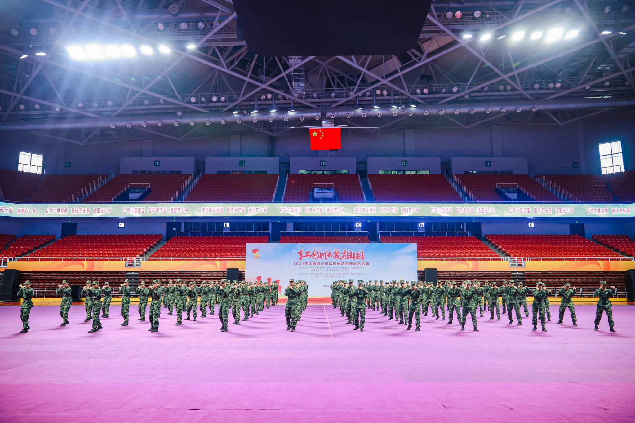 10月27日上午,由省委宣传部、团省委、省教育厅、省少工委、省军区政治工作局等单位举办的“红领巾爱祖国”——2024年江西省少年军校国防素养展示活动在南昌国际体育中心隆重举行。全国少工委、省委宣传部、团省委、省教育厅、省少工委、省军区政治工作局等单位领导出席了本次活动,我校军士学院院长代海作为嘉宾现场观摩,我校选派100名军士生参与军事素养项目表演。本次活动还吸引了全省11个设区市的少年军校代表、少先队工作者计千余人参加。