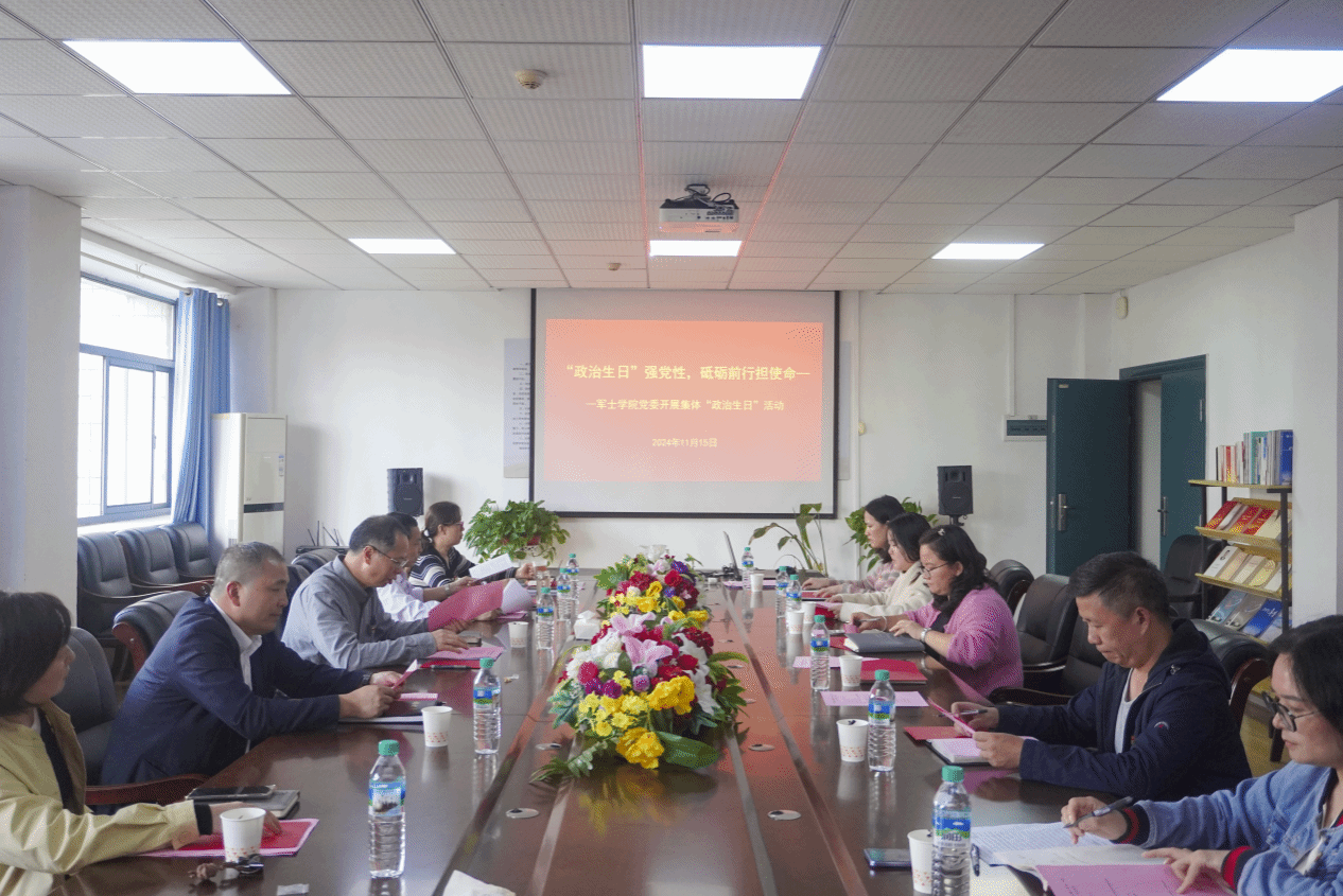 11月15日,为强化党员的身份意识和宗旨意识,增强党组织的凝聚力和战斗力,南昌工程学院军士学院党委在彭桥校区科技馆C202开展“政治生日”强党性,砥砺前行担使命——集体“政治生日”暨党员承诺践诺主题活动,军士学院党委全体教师党员参加活动。