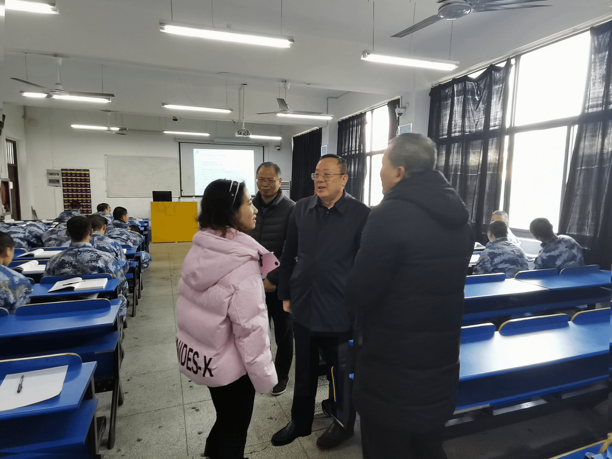 2月24日上午,新学期伊始,校党委委员、统战部部长熊涛走进彭桥校区教学楼,与2024级应用电子技术班的同学一同聆听了《计算机程序设计基础(C语言)》课程,军士学院党委书记章建明、院长代海陪同听课。