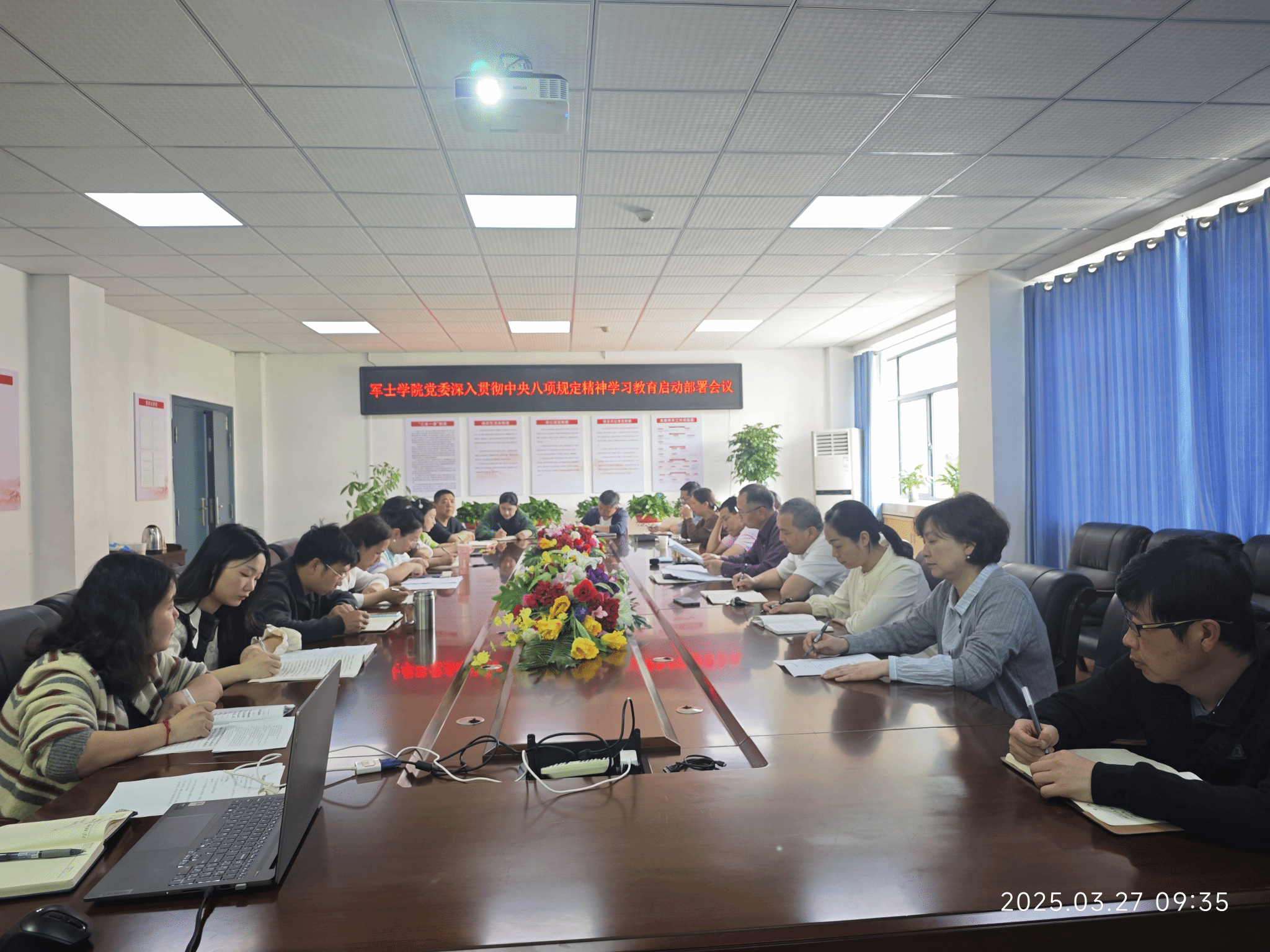 3月27日,军士学院党委召开深入贯彻中央八项规定精神学习教育部署会议,传达学校党委关于深入贯彻中央八项规定精神学习教育的有关文件精神,研究部署学院党委学习教育工作。军士学院党委书记章建明主持会议并讲话,学院党委全体党员参加会议。