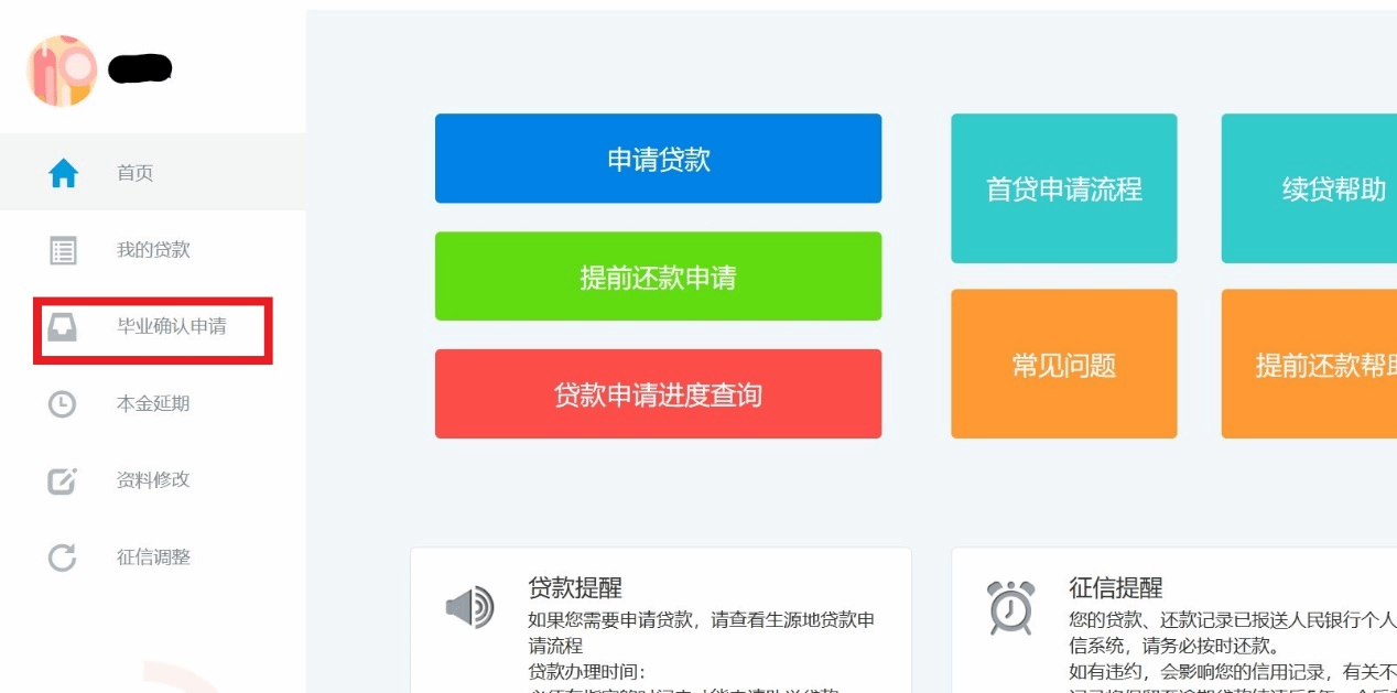 第4步:点击:“毕业确认申请” 下拉到底,点击毕业确认既可